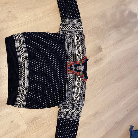 Kofte med brodert hals . Christiania sweather. Norway design by shwg. Ren ull