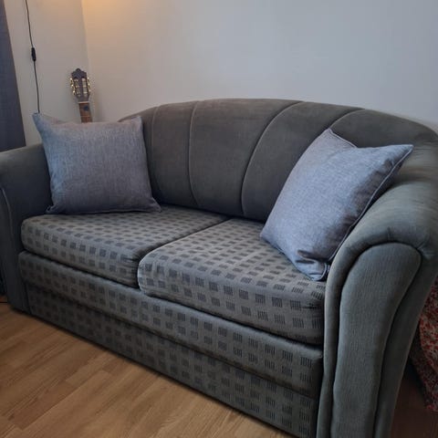 Selger en veldig pen sofa på 160 cm som passer utmerket på soverom, gjesterom eller i mindre stue. Sofaen er i lysegrå ull og har et tidløst og stilrent uttrykk.