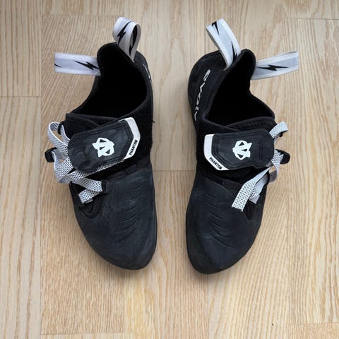 Millet klatresko med borrelås i svart og rodd farge. Skoene har to justerbare borrelåsstropper som gir enkel tilpasning og god støtte rundt foten. Overdelen har mønstertrykk, og sålen er i gummi for godt grep mot klatreflater. Egnet til innendørs og utendørs klatring, både på klatrevegg og buldring.