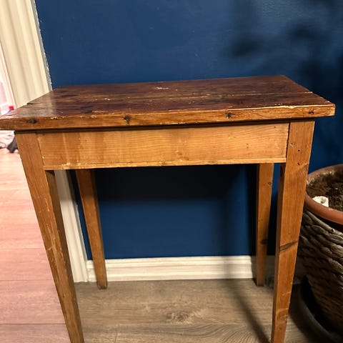 Fint og rustikk bord/sidebord selges:) Bordet har to brukbare skuffer. Har noen bruksslitasjer, men ellers i god stand.