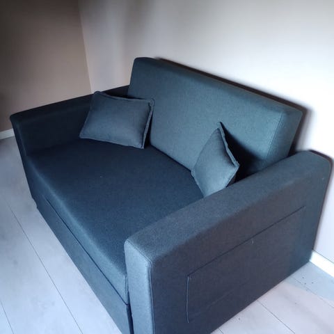 Liten og nett sovesofa selges kr 500 eller bud. Den er lite brukt, kan brettes ut til en liten madrass for ekstra soveplass. Ypperlig på barnerom feks!