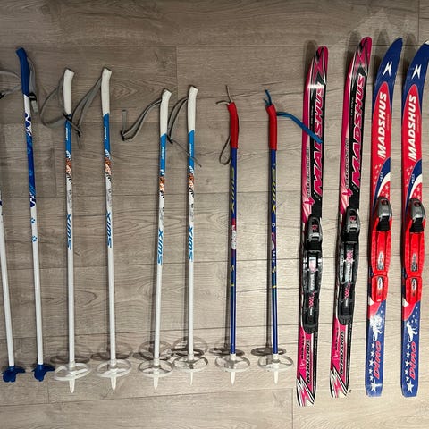 Madshus smørefrie barneski med Rottefella binding. Lengde 90. Lite brukt.