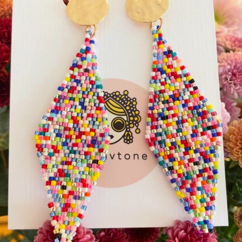 Håndlagd ørepynt av Tingavtone. Øreringer er allergivennlige. Perler av Miyuki og Toho og ferskvannsperler.