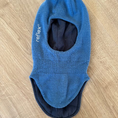 Reflex ull balaklava i lilla til barn, unisex. Størrelse tilsvarer ca. 50 cm / 51–53 cm hodeomkrets (2–5 år ifølge lappen). Ytterstoffet består av ullblanding, mens innsiden har mykt fôr. Balaklavaen dekker hode, hals og deler av bryst og nakke, og er egnet til bruk under lue eller hjelm på kjølige dager.