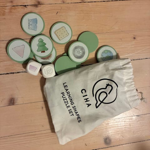 Sett for å utforske volum og 3D former. Formene kan fylles med vann, sand eller andre sensoriske ting. Fin til å lære mattematikk gjennom lek.