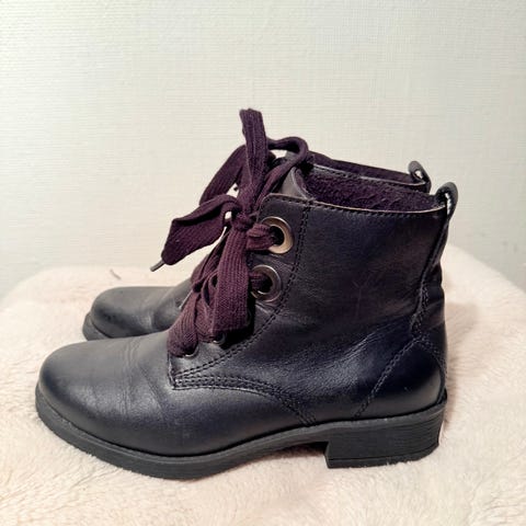 Pensko støvletter i svart farge i størrelse 36. Skoene har glidelås på siden for enklere av- og påtaking. Passer til hverdagsbruk eller penere anledninger, avhengig av stil og behov.