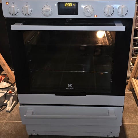 Induksjonstoppen varmer raskt og ovnen fungerer helt fint. Normal bruksslitasje, men ingen feil eller mangler som påvirker bruken.
