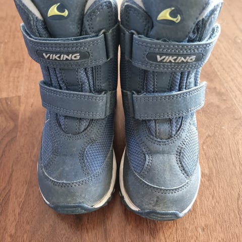 Selger meget pent brukte Viking barnesko i størrelse 24. Skoene er blå med borrelåslukking over vristen for enkel av- og påkledning.