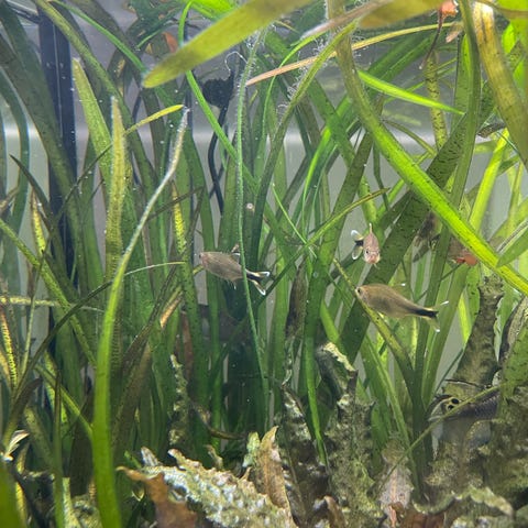 Rydder opp i akvariumer og har noen fisker til salgs.