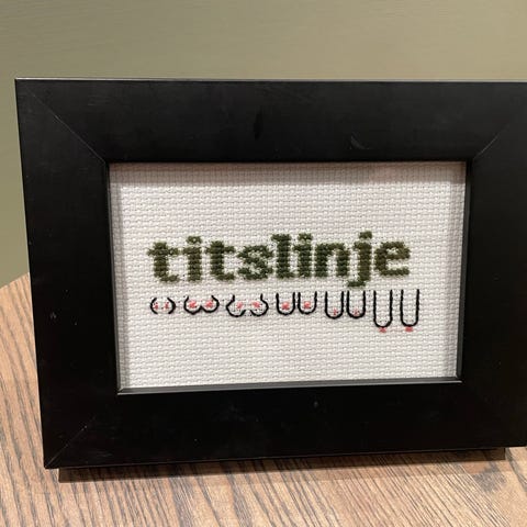 Geriljabroderi selges for kr 160. Mål 22x17 cm.