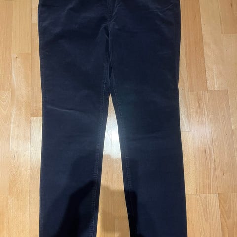 Burgunderrød cordfløyelsbukse i str. 46, kjøpt hos C & A i Kiel. Jeg selger den samme buksen i mørk blå og beige også. Se siste bildet i denne annonsen, og egne annonser for de to andre buksene. Selges fordi de ble kjøpt for små. Synd, for det er pene bukser. Mye stretch.