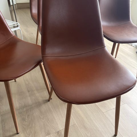 To stoler fra House Doctor selges. Nypris 1549 pr stol, Begge stolene bør trekkes om da trekket er skrapet opp. Ene stolen mangler en av knottene under. Selges samlet