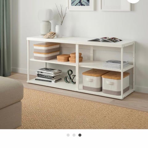 Selger en typ seksjon med god plass. Det er fire skap øverst og de kan tas av evt. Den kommer i to deler. To forskjellige typer seksjoner på sidene bak to skyvedører. Brune dører og svart ellers. Uten merker og lite brukt. Er et pent møbel.