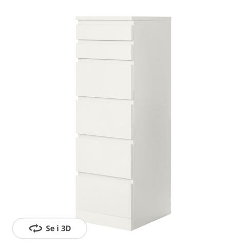 Hvit MALM Kommode, 6 skuffer