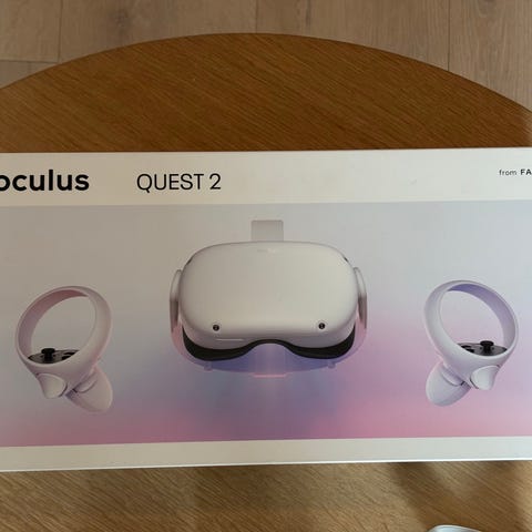Headsettet er et frittstående VR-system med innebygd lagring på 256 GB. Alt avbildet medfølger: