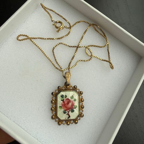 Ubrukt amulett fra Indiska med broderi og inni er det plass for foto