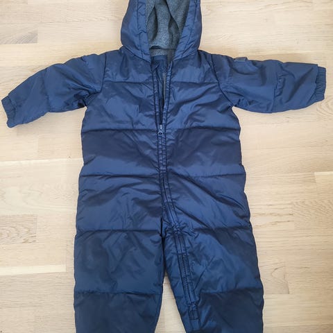 Newbie kjeledress til baby, perfekt til vinterens kalde vær! Dressen er svart og vattert med dunfyll. Den har hette med mykt, lyst fôr og hel glidelås foran som gjør den enkel å ta av og på. Ermene er utformet slik at de kan brettes over hender for ekstra beskyttelse. Ytterstoffet er glatt, mens innsiden er dekket med fleece. Meget pent brukt, ingen anmerkninger.