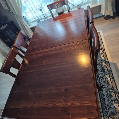 Perfekt å ha på hytta, solide furumøbler.