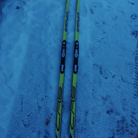 Pent brukte Fischer Sprint med rottefelle bindning. Noe smørerester under som syns på bildet. Ellers pene.