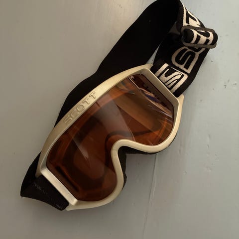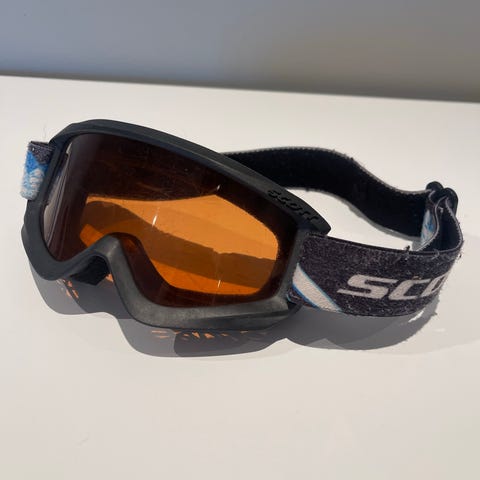 Scott skibriller for barn med rammer i hvit og blå farge og oransje linser. Justerbare elastiske stropper med mønster gjør at brillene kan tilpasses barnets hode og hjelm. Skibrillene har skum rundt rammen for bedre passform og komfort mot ansiktet. Egnet til bruk i alpinbakke og annen vinteraktivitet der øynene trenger beskyttelse mot vind og snø.