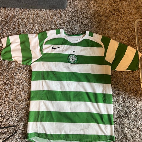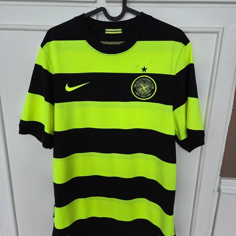 Nike Celtic fotballdrakt for herre i størrelse XS. Drakten er grønn med gult rutemønster og har Celtic Football Club-emblem på brystet samt Nike-logo. Kortermet modell med rund hals. Laget i teknisk polyesterstoff egnet for fotball og annen trening. Baksiden er ensfarget grønn uten trykk. Fotballdrakten har med noen små bruksmerker det står et lite flekk som det (vises på bildet)