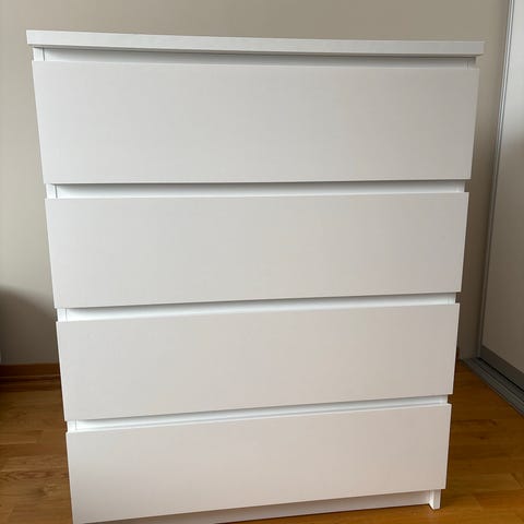 Malm kommode fra IKEA. Pent brukt. Ingen betydelig bruksmerker. De to øverste skuffene er bunnen litt bøyd.
