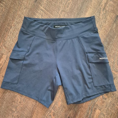 Iciw treningsshorts for dame i størrelse XL. Shortsen er blå og laget i et elastisk, tettsittende materiale som egner seg til fitness og annen trening. Den har bred linning for bedre passform og støtte. Passer til innendørs og utendørs treningsøkter.