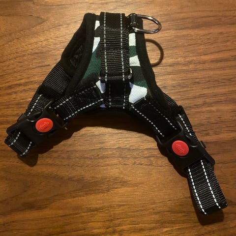 Hundejakke i gul farge med svarte felt og refleksdetaljer. Jakken har lomme med klaff på ryggen og justerbar snor øverst. Åpen underside for god bevegelsesfrihet. Egnet som ytterplagg for hund i kjølig eller vått vær.
