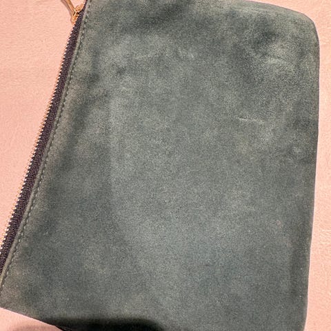 . Vesken har strukturert skinn på utsiden og innside med klassisk Gucci-mønster. Lukkes med glidelås øverst og har en avtagbar håndrem i samme farge og materiale. Passer til oppbevaring av mindre eiendeler som mobil, nøkler og kort. Laget i skinn (lær).
