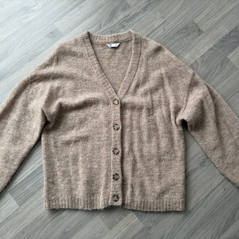 Selger en ubrukt wrap cardigan i 100% merinoull. Utrolig mykt og godt plagg.