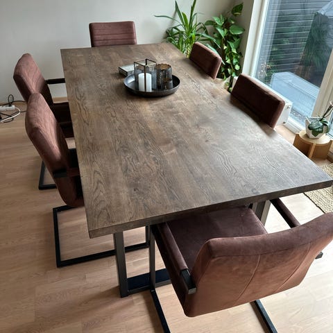 Er blitt brukt mye og varer i mange år til, for de som trenger ett fint men og robust møbel. Normalt vedlikehold med olje 1-2 ganger pr år men vil anbefale å pusse med fint sandpapir og olje på ny før bruk. Da vil det se ut som helt nytt!!