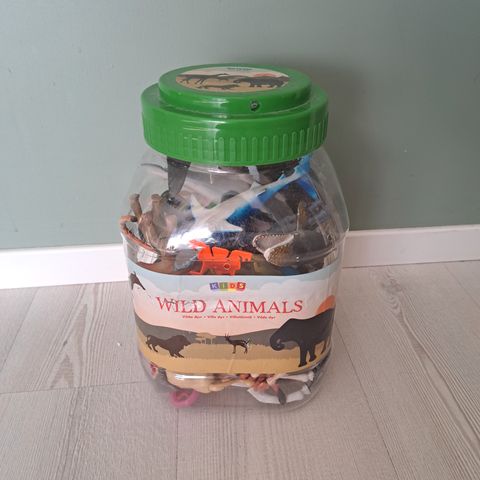 Aarikka Farm Animals lekesett med gårdsdyr i plast. Settet kommer i en plastbøtte med grønt lokk og inneholder flere plastfigurer av gårdsdyr samt tilbehør som små «steiner» og busker. Figurenes størrelse passer for barnehender og kan brukes til rollelek og enkel gårdslek på gulv eller bord. Egnet som lekedyr for barn som liker gårdstema og dyrefigurer.