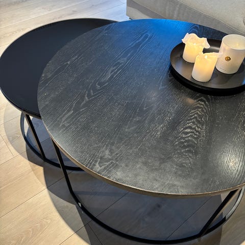 Pent brukt salongbord selges. Ukjent opphav, men solid og stødig. Plate under bordplaten til oppbevaring.