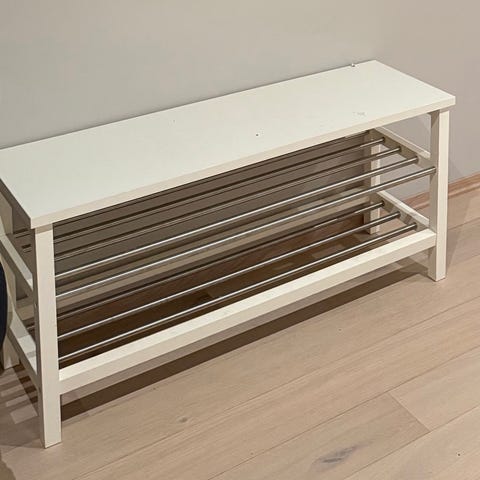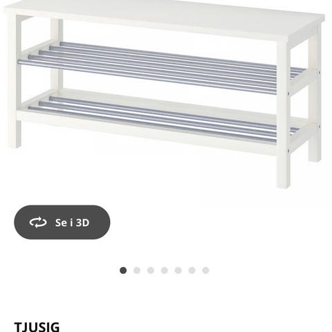 Selger IKEA TJUSIG entrébenk i svart. Den har to åpne hyller til sko og en enkel sitteplass når du tar av og på sko. Passer perfekt i entré, gang eller garderobe.