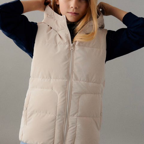 Mango vest for barn i størrelse 140 cm, beregnet for jente i blå polyester med glatt overflate. Elastisk linning for bedre passform. Materialet er lett og egner seg til hverdagsbruk. Vaskes i maskin på maks 30 °C ifølge vaskeanvisningen på plagget.