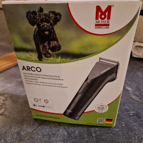 Selger en lite brukt Arco Pro klippemaskin fra Wahl / Moser (Type 1876). Perfekt for hjemmebruk og spesielt godt egnet for nervøse hunder, da den er stillegående og har lav vibrasjon.