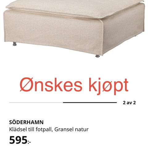 Ektorp puff som fremdeles er i pappesken. Pappesken til trekket er kun åpnet men ikke tatt ut.