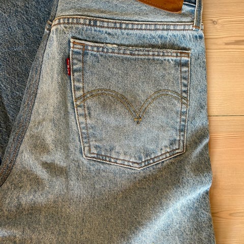 Levi's jeans for dame i størrelse L med livvidde W31 og lengde L32. Buksen er laget av bomull og har klassisk blå denimfarge. Den har baklomme med karakteristisk Levi's-søm og merkelapp i skinnimitasjon i linningen. Passer som hverdagsbukse eller til mer uformelle anledninger.
