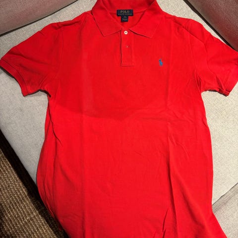 Ralph Lauren pique poloskjorte for herre i størrelse M. Skjorten er blå og laget av bomull. Klassisk poloskjorte med krage, kort erm og knappestolpe med to knapper. Brodert logo på brystet. Passer til hverdagsbruk og enkle, pene antrekk.