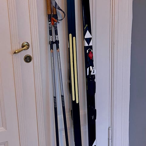 Skistøvlene er høye i ankelen med snøring og glidelås, og har borrelåsreim for bedre støtte. Skiene har trekjerne og har Fisher NNN bindinger (Rottefella). Smøreski til klassisk langrenn i preparerte løyper. Alt er lite brukt.