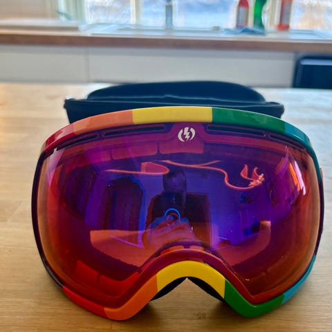 Alprace skibriller med oransje ramme og bred, justerbar oransje stropp med logo. Brillen har speilfarget dobbel linse med antidugg-belegg, som bidrar til å redusere duggdannelse under bruk. Myk skumfôring på innsiden gir komfort mot ansiktet. Egnet til bruk ved alpint og andre vinteraktiviteter der øyebeskyttelse mot vind og lys er nødvendig.