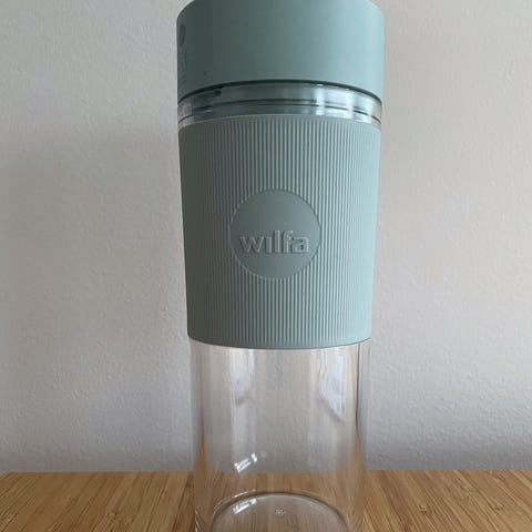 Den er litt brukt, men i god stand. Kjøpt da jeg bodde på hytta etter strøm og savnet en smoothie i ny og ne. Eske følger med.