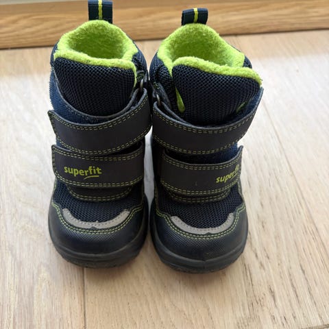 Pent brukte Superfit barnesko i størrelse 19. Brukt en halv sesong av ettåring før de ble for små. Han krabbet litt i starten, derfor bittelitt slitt foran på tuppen. Kan sendes eller hentes på Hvalstad i Asker eller på Universitetsplassen etter avtale.