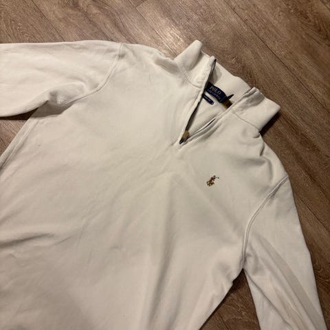 Eksklusiv quarter-zip fra Polo Ralph Lauren, modell Estate Rib, i den elegante fargen Chic Cream.
