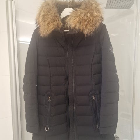 Aleksander pelsjakke for dame i størrelse S. Jakken er hvit og laget i pels, med glatt fôr på innsiden. Den har lukking foran og klassisk krage. Passer som ytterjakke i kaldere vær og kan brukes til både hverdags og mer formelle anledninger.