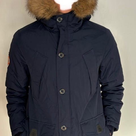 Parkas fra Moods of Norway til herre i str XL. Modellen på bildene er 182 høy og bruker normalt str L i jakke.