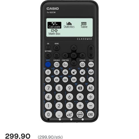 Casio ClassWiz fx-991EX kalkulator i svart med hvite taster. Vitenskapelig kalkulator med stort display og mange funksjoner for blant annet algebra, statistikk og trigonometri. Leveres med hvitt beskyttelsesdeksel. Brukerveiledning for fx-570EX/fx-991EX følger med.