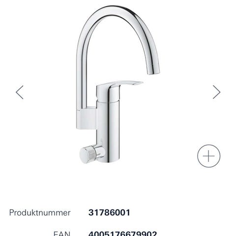 Grohe Red varmtvannssystem for kjøkken, med bereder, kjøkkenkran og tilhørende ventiler og koblinger.