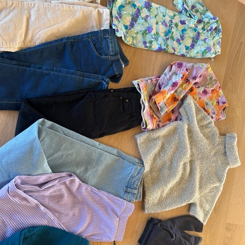 Joggebukse, ullbukse (blomstrete), genser og cardigan selges samlet 150 kr. Forskjellige merker som Cubus og Name it. Helt og pent, lite brukt.