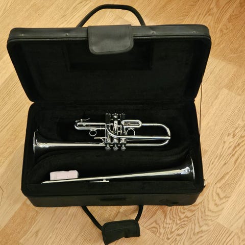 Getzen 300-series Eb/D trompet, serienummer K 73986, håndlaget i Elkhorn, Wisconsin, USA. Dette er en studentmodell som egner seg godt som bi-instrument til Haydn og Hummels trompetkonserter og ved andre anledninger der Eb- eller D- horn skal benyttes. Jeg har også brukt det til å øve ambis. Hornet er fra ca rundt 1980; - jeg kjøpte det brukt i London i 2005. Jeg selger fordi jeg skal flytte og derfor trenger å kvitte meg med en del horn.